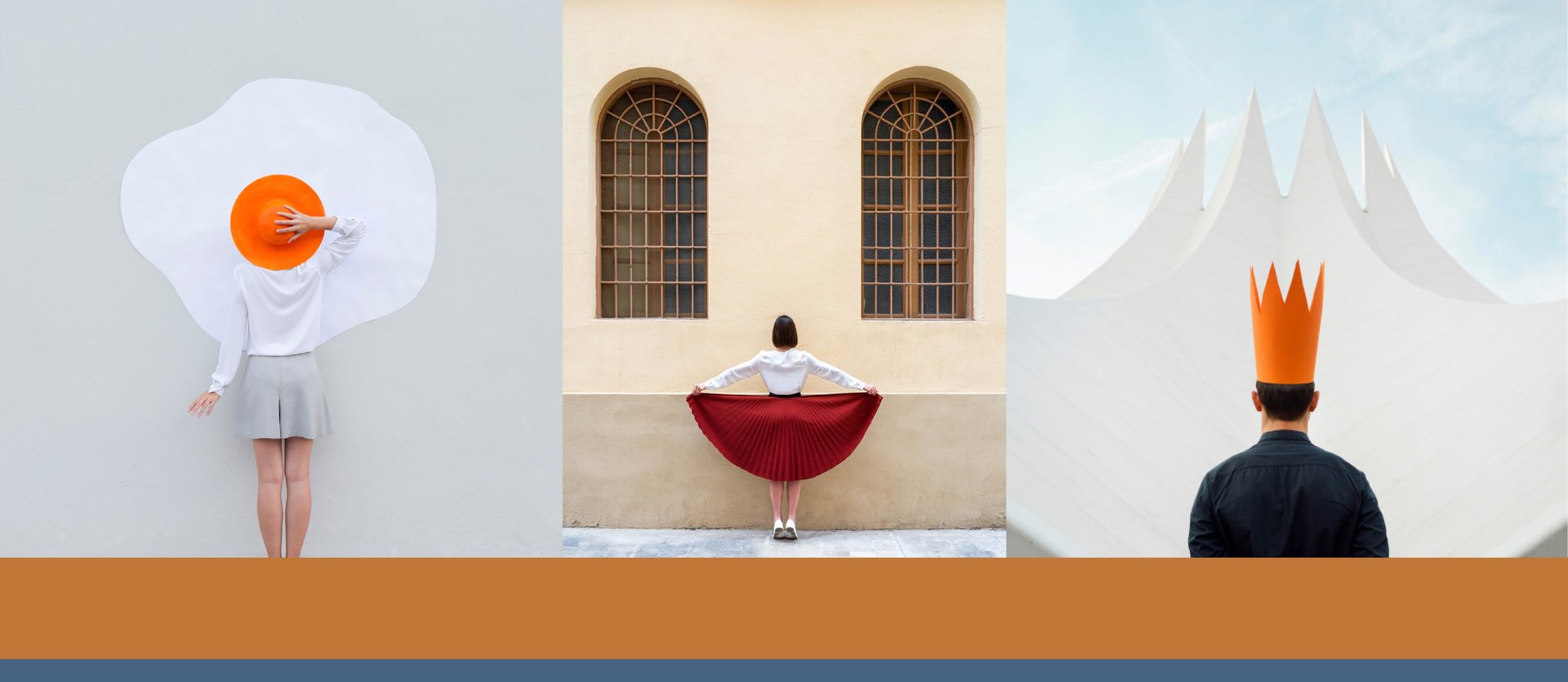 是次展覽中,有以音樂為主題的攝影作品,亦有以紙張打造的得意之作,其中一輯以帽子作為主題的作品最引人注目。Anna和Daniel透過佩戴不同顏色的帽子,與他們的同色衣服及打造的簡約背景連成一體,創作一系列令人會心微笑的可愛作品,同時不忘對外傳送二人的甜蜜之情。