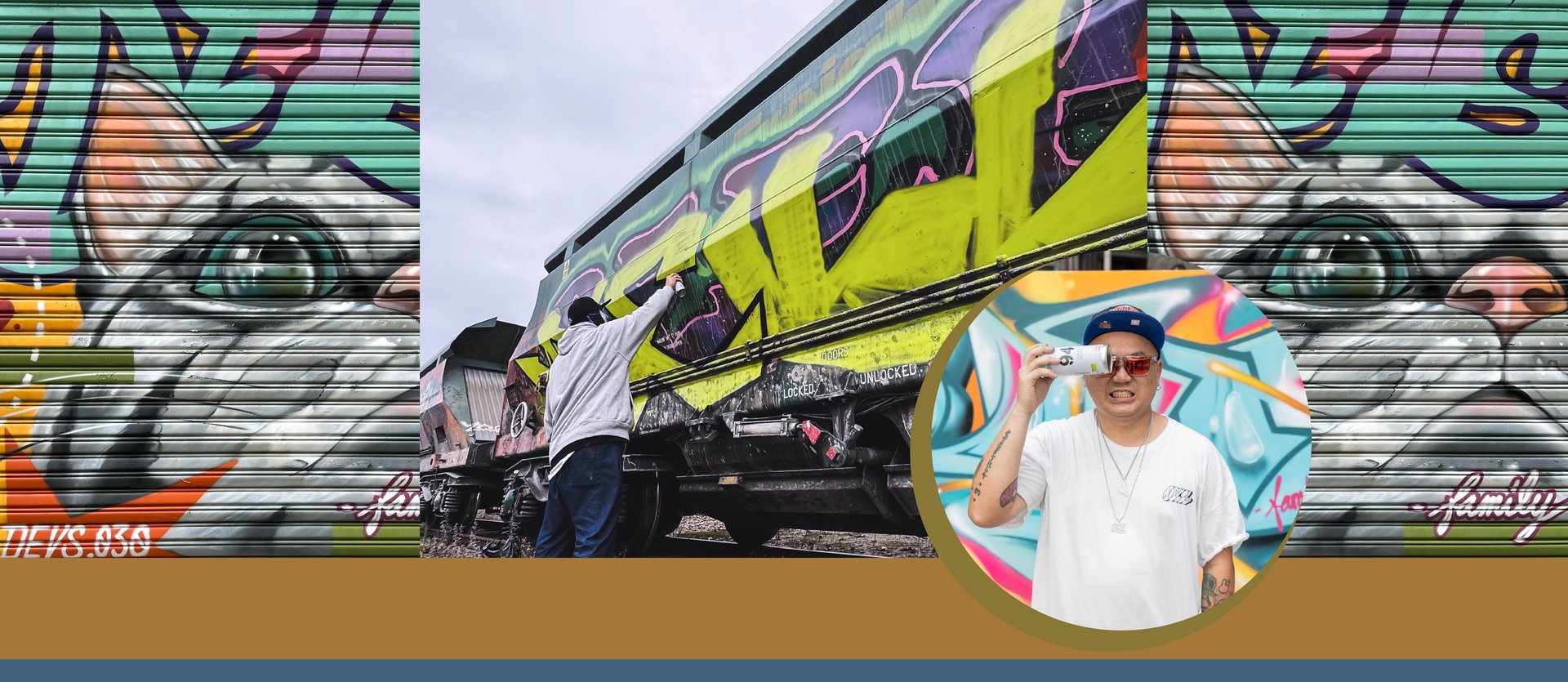 黃建豪(DEVS) 一名從事塗鴉藝術25年的中佬。雖然不務正業,但熱愛這門藝術,並深深投入其中。