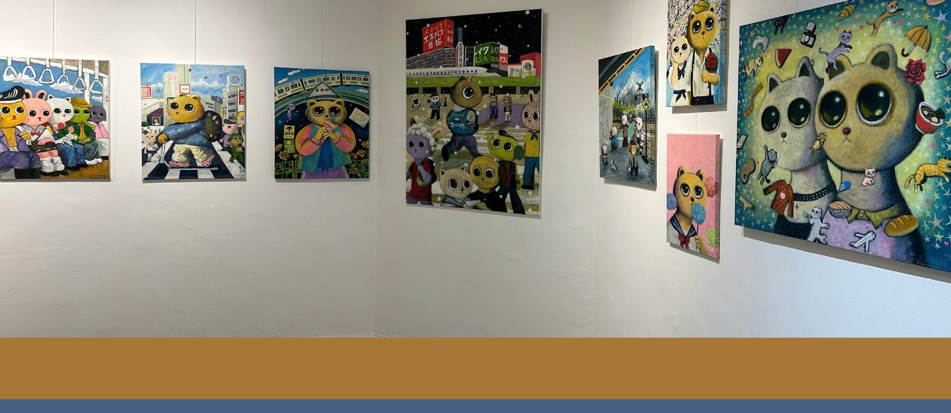 A: 今次呢一批展出嘅作品,都係喺日本嘅兩年半生活集大成,全部都係由日本空運過嚟,記錄用我嘅眼睛我嘅心境去睇日本、對愛嘅幻想、想向日本嘅可愛文化作出致敬。我一直都堅持每張畫作都要有愛呢個元素,因為有愛先至會感動到人。
