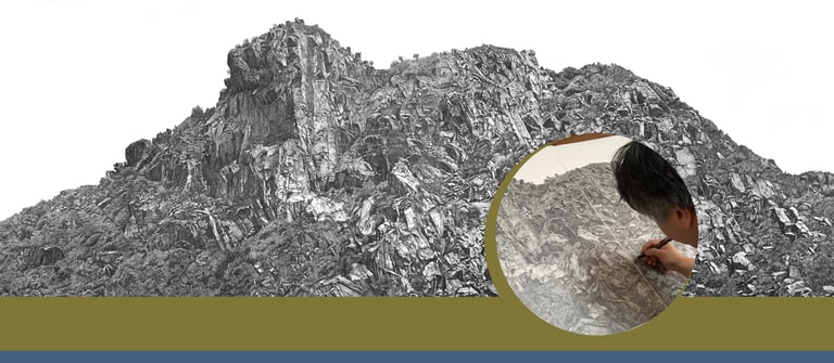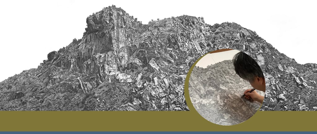 “近十年我對畫畫已經不是興趣與否,它已成為我的生活習慣,等如每天刷牙洗面一樣,興趣可以隨時改變,生活習慣是不能改變的。很多人覺得創作需要很大的空間,這點非常認同,空間多大,創作便多大,但不是每個人都有這樣的能力,尤其在香港高昂的租金下,有多少人可以同時兼顧生活和創作兩個空間。我沒有工作室,全部創作均在家中進行,所以選擇鉛筆創作最為合適的。2022-2023年期間,我畫了獅子山,亦成為了創作生涯中最大的一幅作品(78 cm x 240 cm)。
