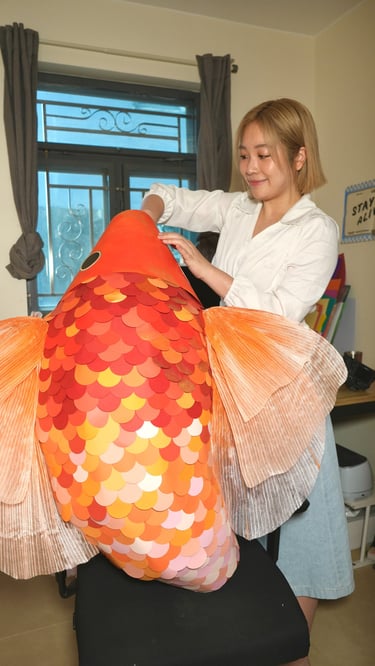 “最具挑戰性的作品暫時是去年新年為黃大仙中心創作了兩條超過兩米長的金魚,那次是我第一次製作這麼大型的作品,而且在製作、運送過程中有太多太多難忘的經歷。